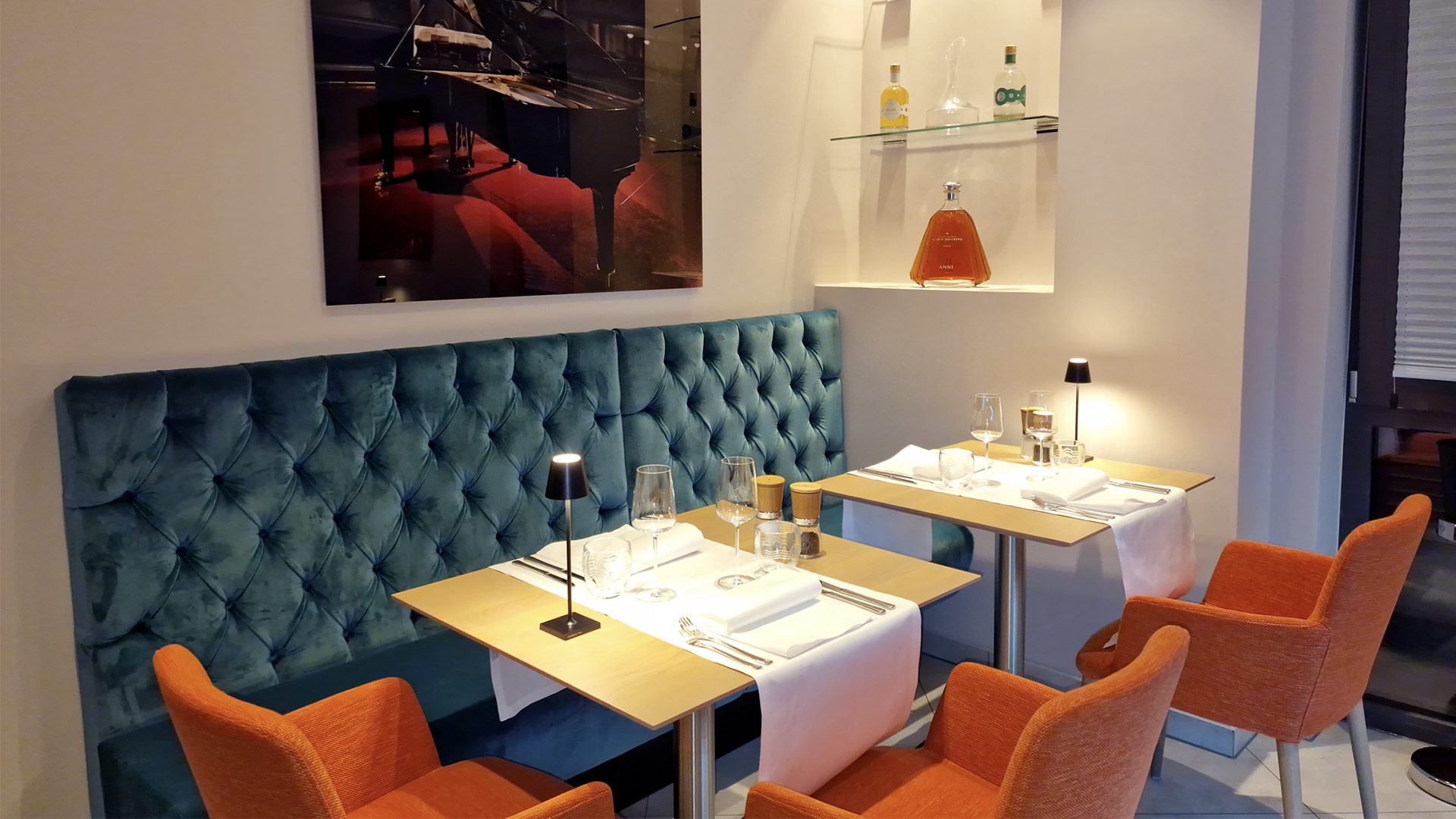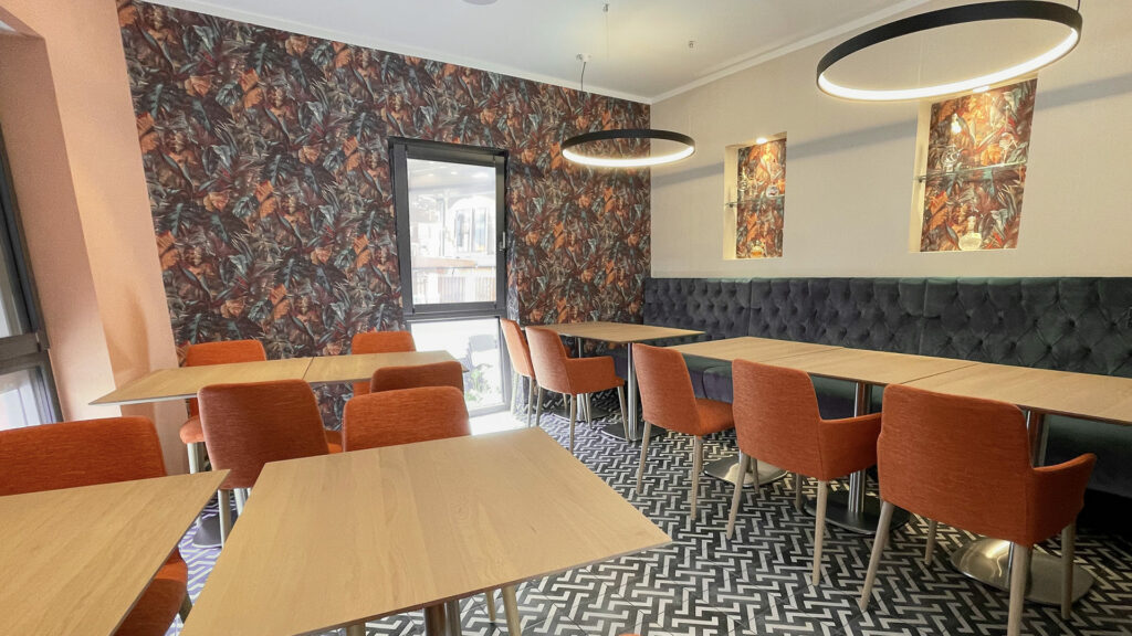 WEIN, GENUSS, FREUDE – Das italienische Lokal „Esposito“ ist zurück! Für das ehemalige „Buon Gusto“ durften wir an einem neuen Standort in Wiesbaden-Bierstadt ein modernes Konzept entwerfen und bis zur schlüsselfertigen Übergabe umsetzen. Vom Logo über die Außenfassade bis hin zum Innenraum haben wir jedes Detail neu interpretiert, um ein Restaurant der italienischen Extraklasse zu gestalten, dass Wein und Genuss zelebriert. Ein warmes Farbkonzept mit orangenen Akzenten, Holzoberflächen, extravagante Tapeten und geometrische Fliesen harmonieren, um das Gesamtkonzept zu vollenden und markante Akzente zu setzen.