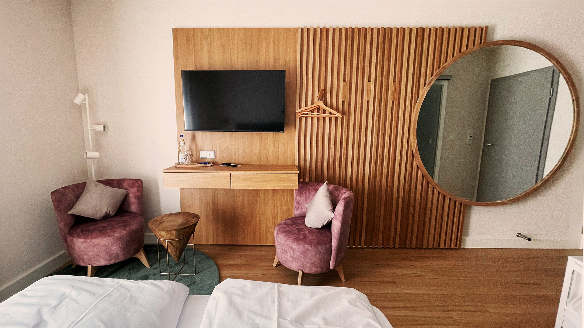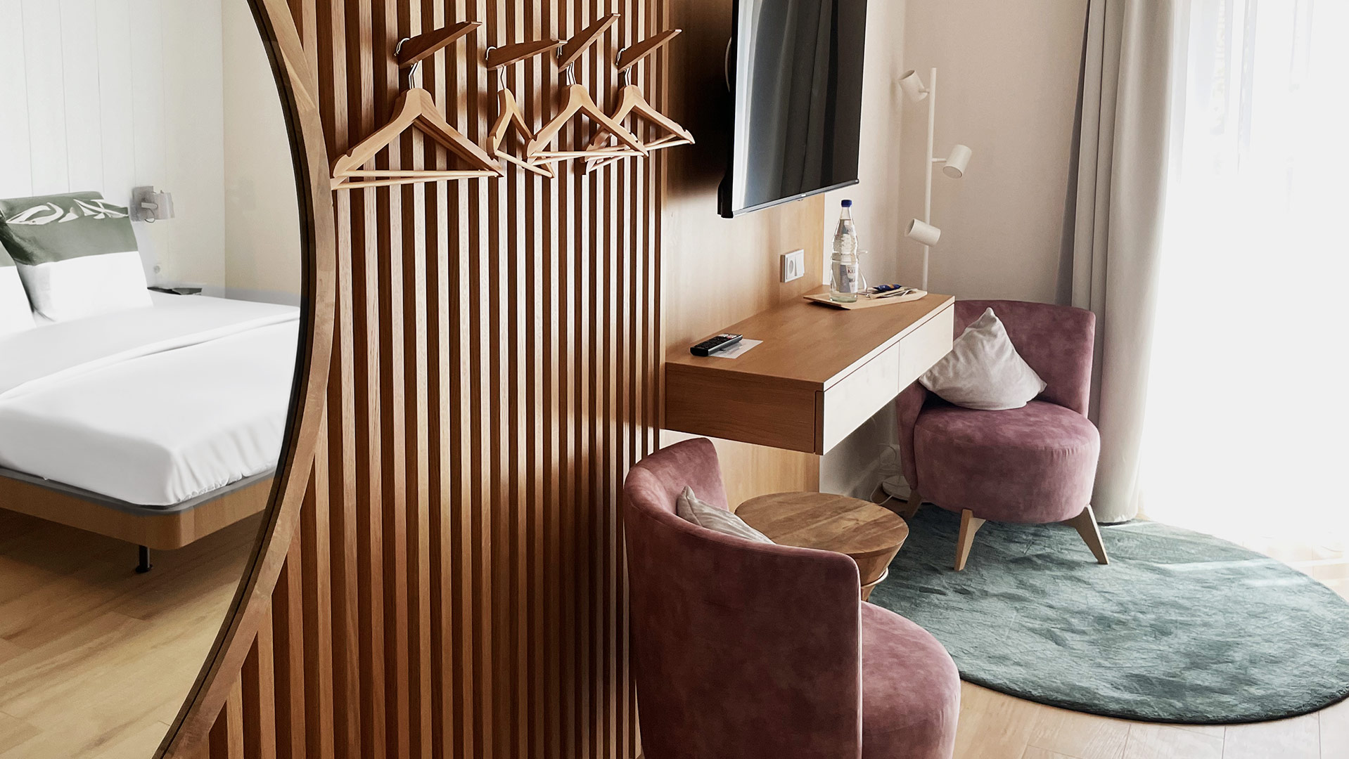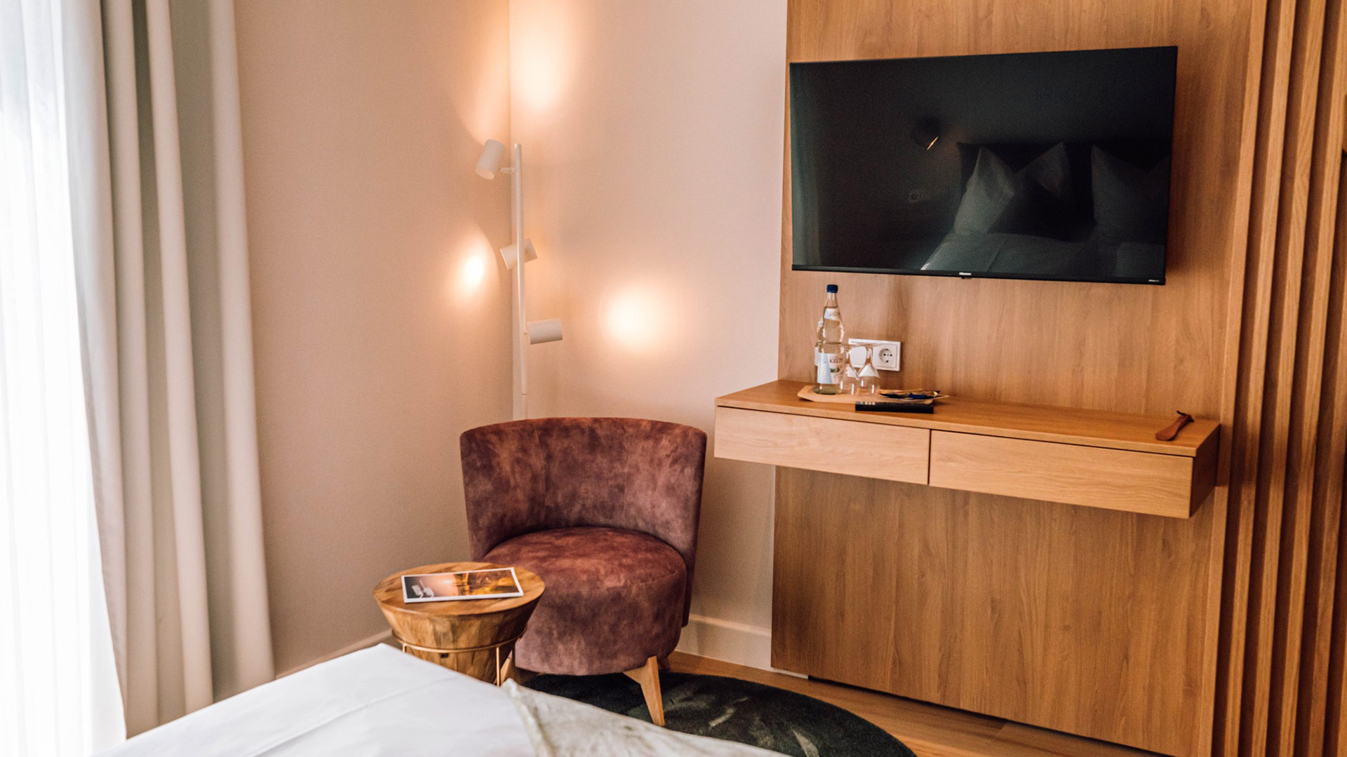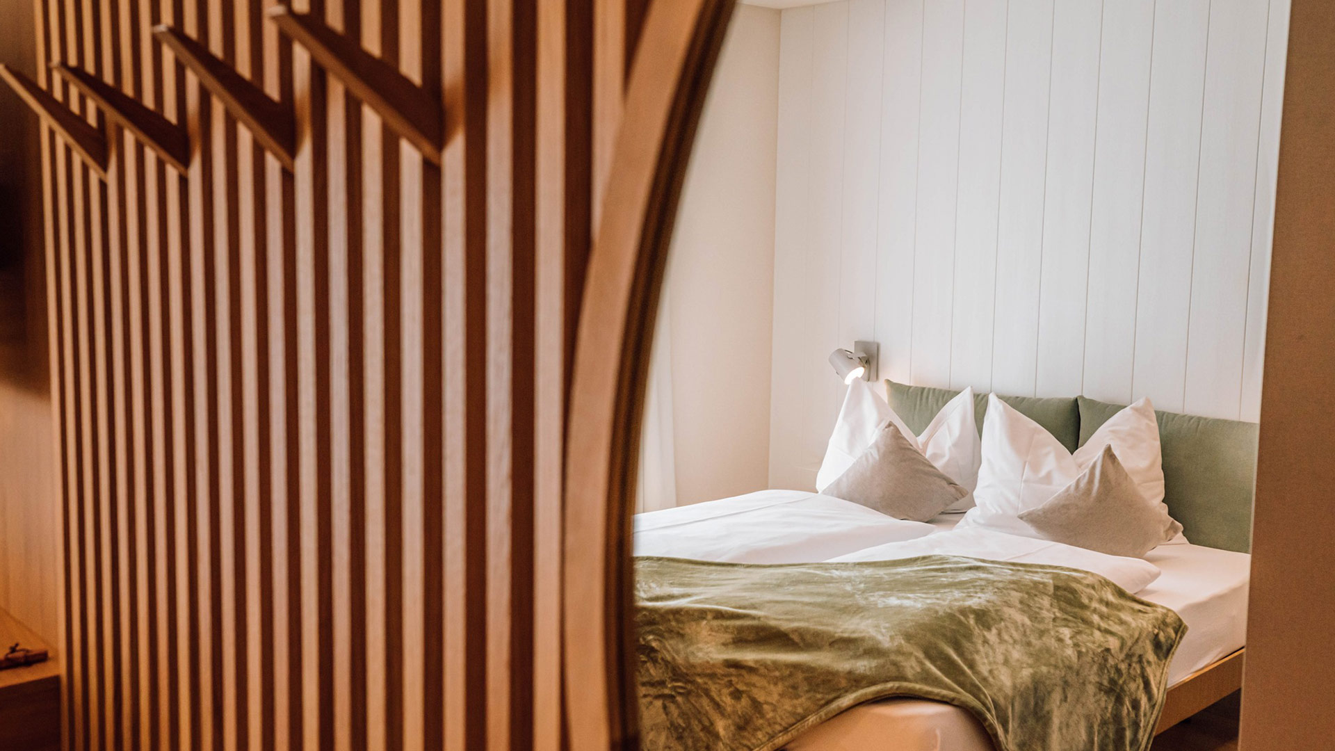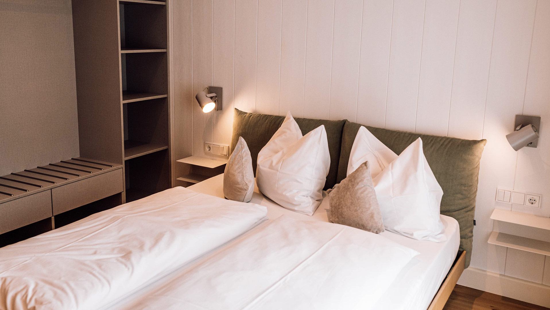 Mitten in der Naturidylle durften wir das Vergnügen haben, drei Zimmer neu zu gestalten. Dabei haben wir die Räume vollkommen neu interpretiert und mit warmen Holznuancen sowie erfrischenden Altrosa- und Grüntönen neue Akzente gesetzt. Hier verschmelzen italienisches Design und ländliche Idylle. Die neuen Komfortzimmer sind ein wahres Liebesnest für frisch Verliebte, mit direktem Zugang zum romantischen Kirchengarten und einem hohen Maß an Komfort. Der Hof bietet eine traumhafte Kulisse für Erholungssuchende, Weinfreunde und Feinschmecker gleichermaßen.